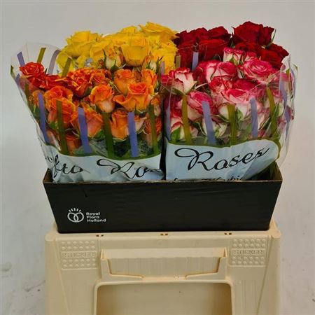 Kolli 20 Min. Stiellänge 40 cm Inhalt 40 Anz. Blüten 4 und mehr Total 800 Reifestadium 2-3 VE 10 Farbe mix Lieferant Veiling Rhein-Maas GmbH & Co. KG Züchter Lafto Roses Plc. € -,-≥ 40 stk € -,-≥ 120 stk € -,-R Tr Gem Fust